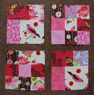 As usual I have started sewing without much of a plan in my head, and although I have put something pretty together, I honestly don't know how to carry on. Any ideas? I thought of making a quilt, but I am not sure whether to stick to pinky colours or to add some other, like the blue/green ones above. What are your thoughts on this? I would really appreciate some feedback!